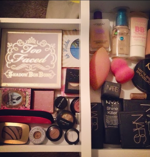 I say 'round one' because it's evident that I'll be back for many, many other things. I decided my make-up area, or space was not cutting it. One night, I was watching one of my favorite You Tube beauty gals show off her vanity tour & make-up organization. Now - I'm a girl that loves a good organization session, so naturally, I watched the video with high concentration and awe. 14 minutes and 30 seconds later, I knew I had to replicate what she had. The room. The drawers. The white, sleek table top. The drawers that I knew I could only fill half way and in turn, would give me an excuse to buy more products.