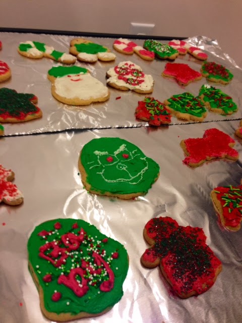 Sunday was the start of a tradition (hopefully) with my friends and I. We bravely took on the task of having a cookie day; baking homemade Christmas cookies. All day. We slaved in the kitchen for hours, making dough and icing from scratch, followed by an intense icing competition. And while our "red" food coloring turned out to be a bright hue of pink, we made it work. Because we're clearly professionals.