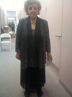 Let's start with the dress that she is wearing to my cousins December wedding (see picture below). Not only does she really like it, she says "...it makes me look skinny, taller and hides my hernia. I have a dress, a necklace and new pair of heels to go with it. All I have to do is show up. That's if God doesn't take me first."